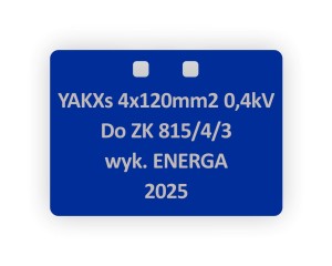 Tabliczka montowana na kablu za pomocą opaski zaciskowej. Odporna na warunki panujące wewnątrz złącza energetycznego, w tym podwyższoną wilgotność i zmienne temperatury.